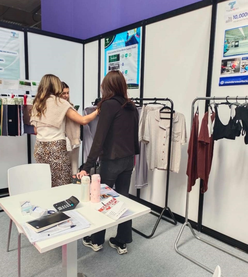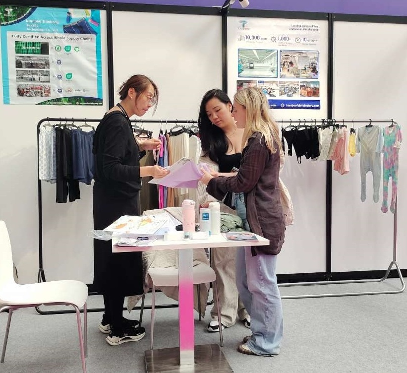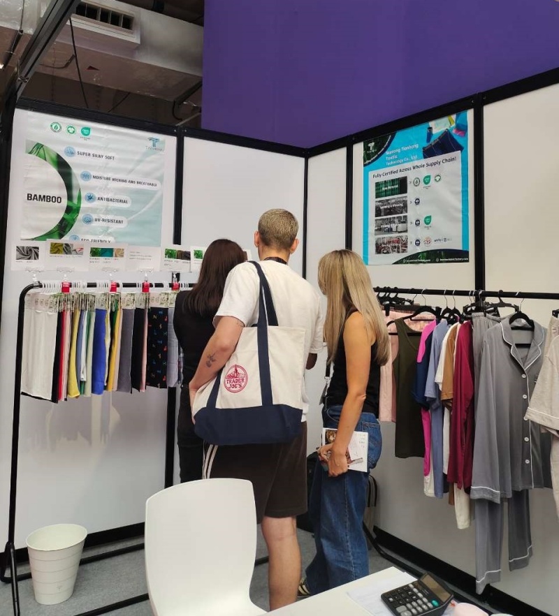 På Årets Expo Presentert Tianhong Stolt Vårt Bambus-ViskoseundersØK OG Avansterte Designteknikker. Boden Vår Trakk BetyDelig Oppmerksomhet, Med Mange Besøyende Begeistret for Vårt Unike Bambusviskosestoff, Avansterte Sydeteknikker og Sterkt Engasjement for Bærekraft.